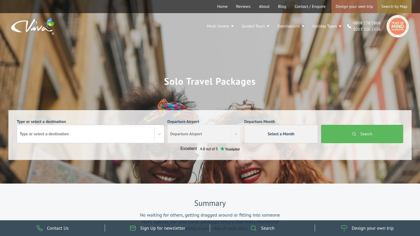 The website clearly signposts its solo traveller section, making it easy to find relevant packages. Their UK offerings cover a range of experiences, from city breaks to more scenic rural escapes. While the site provides a good overview of the trips, you may need to enquire directly for detailed pricing and specific tour inclusions, as this information is not always readily available online.